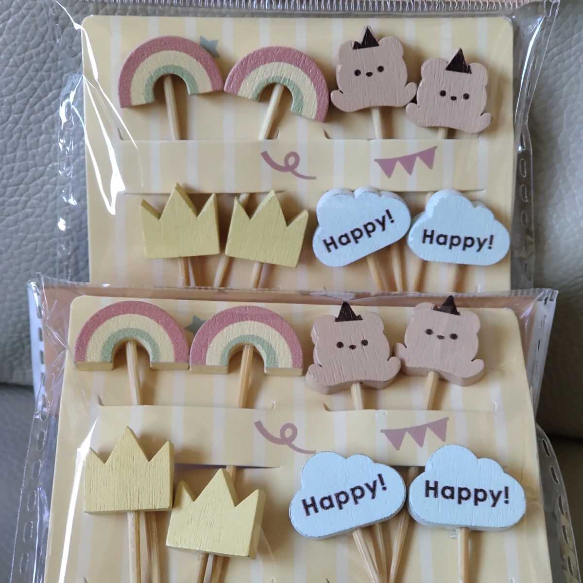 - 新品 ピック バースデーベアピック 2点セット 木製 虹 レインボー くま クマ 熊 ベア 雲 王冠 お弁当用 ケーキ用 グッズ 楊枝