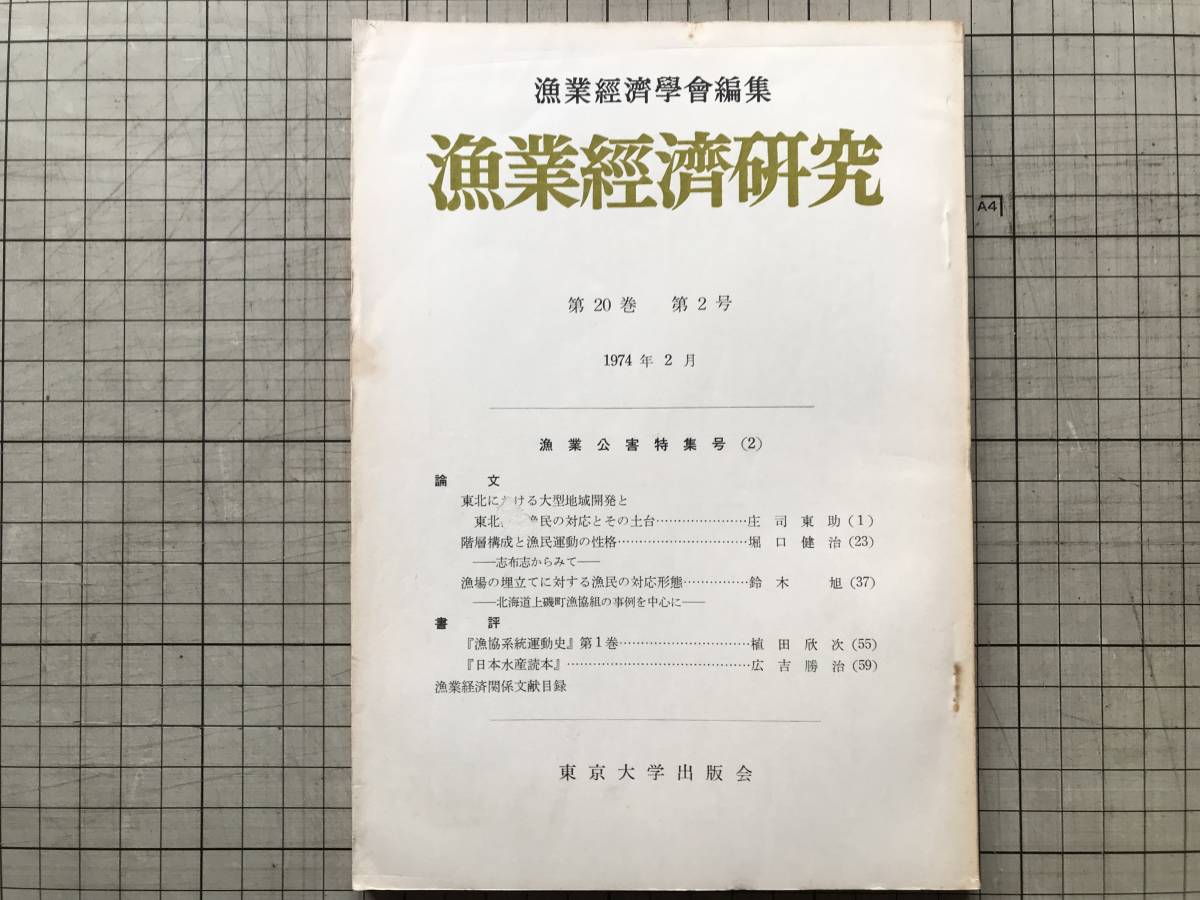 > 『漁業経済研究 第20巻第2号 1974年2月 漁業公害特集号2』漁業経済学会編集 階層構成と漁民運動・志布志・上磯町 他 東京大学出版会 07861