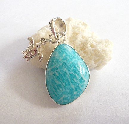- ★ 即決 SV925 天然石 アマゾナイト ペンダント ハワイアン カメ ホヌ A3