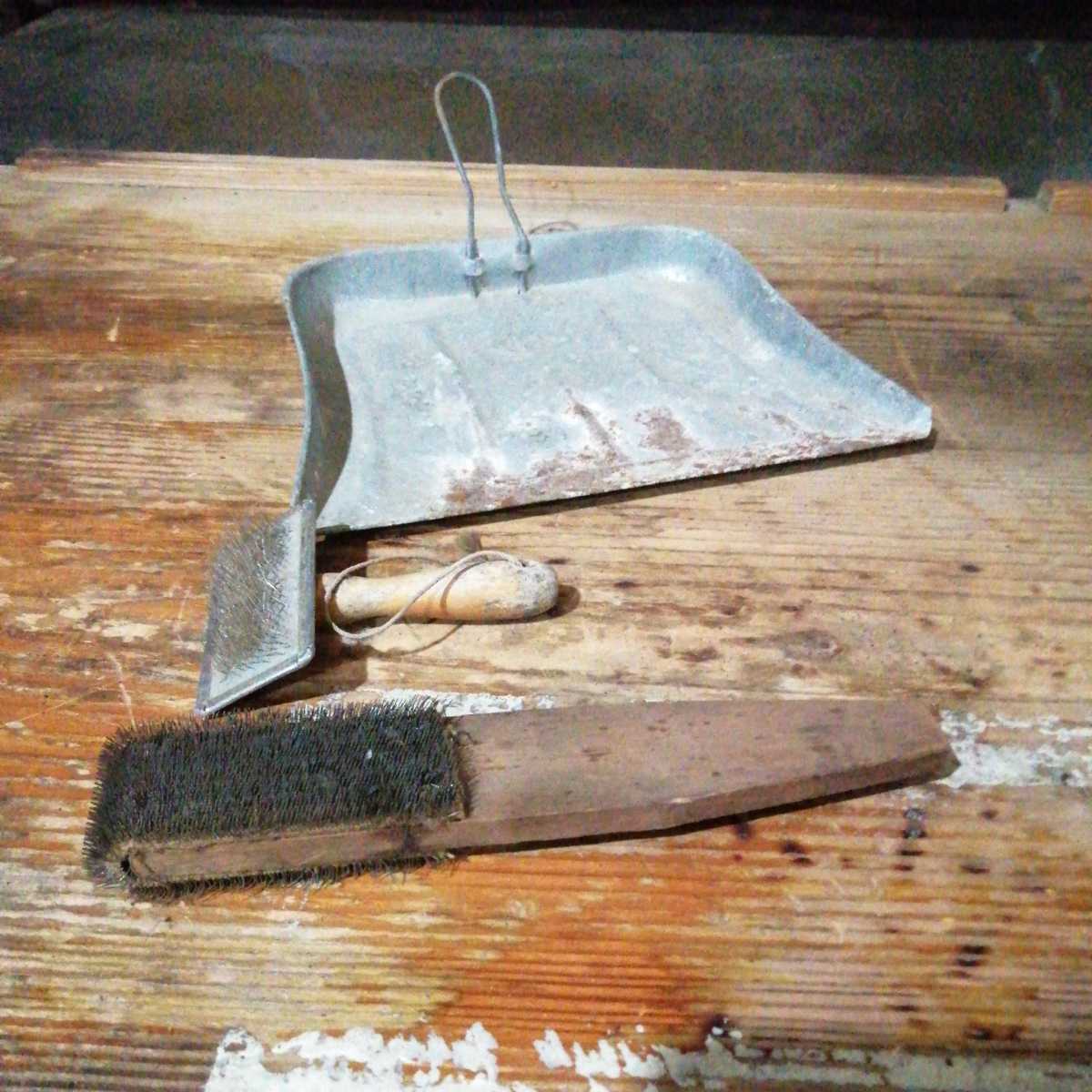 - 計3点 アンティーク ブリキのチリトリ 毛並み 毛抜き ウッド 木 柄 毛揃い 昭和レトロ 撫でブラシ ブラッシング