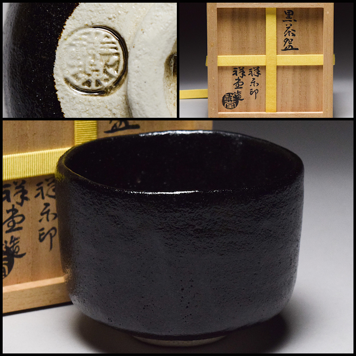 - 【八八八】平安 手塚祥堂 祥楽印 黒茶碗 ◆共箱 共布 茶道具 抹茶碗 黒楽茶碗 【x-151】