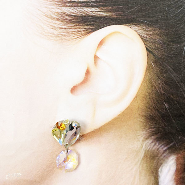 > 送料無料! イエロー オレンジ ドロップ形 揺れる イヤリング 輝く キラキラ ウェディング パーティー 発表会 社交ダンス