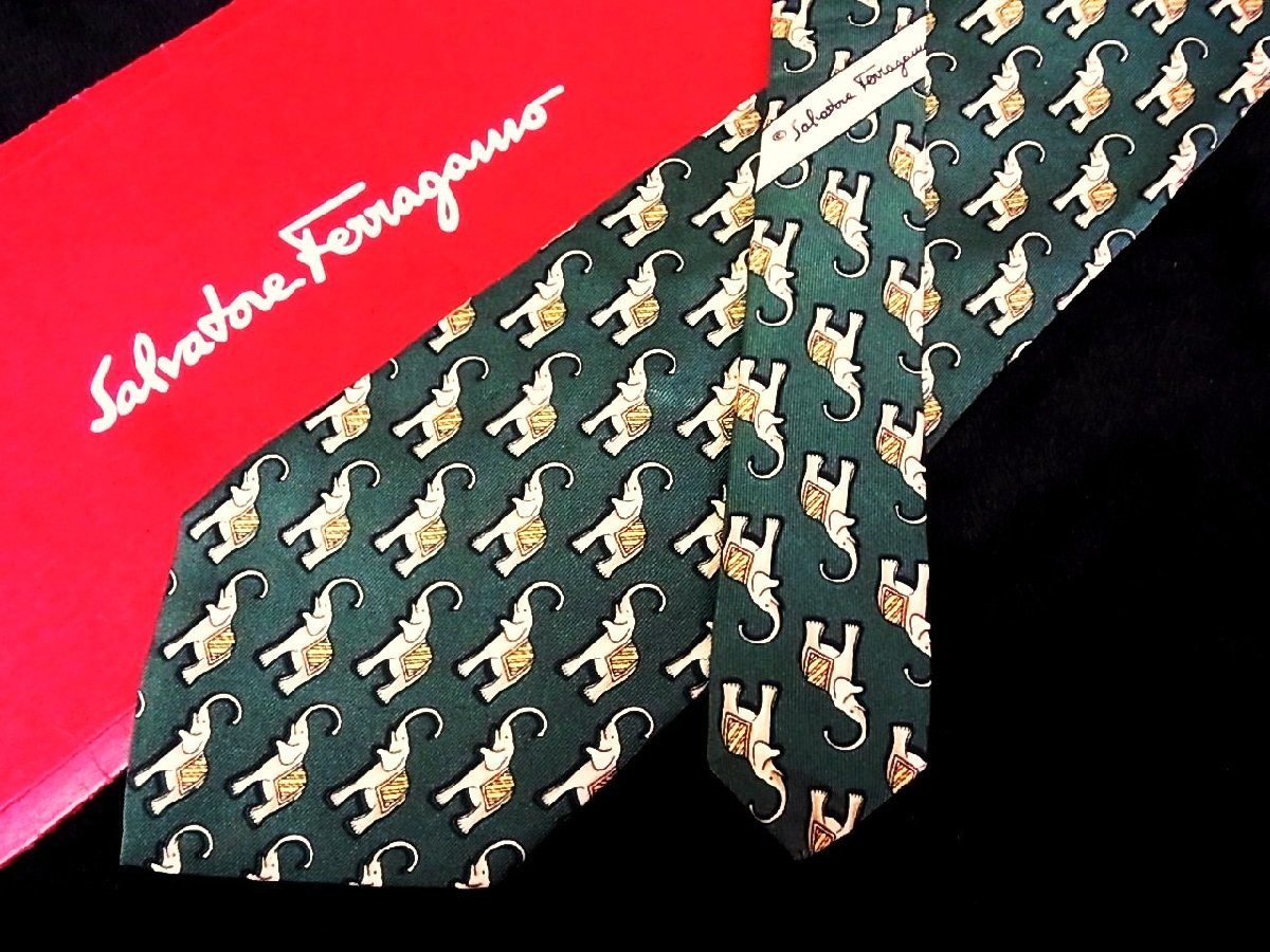 - ♪今週の特売980円~♪1669♪良品【Ferragamo】フェラガモ【象 ゾウ 動物 柄】ネクタイ♪
