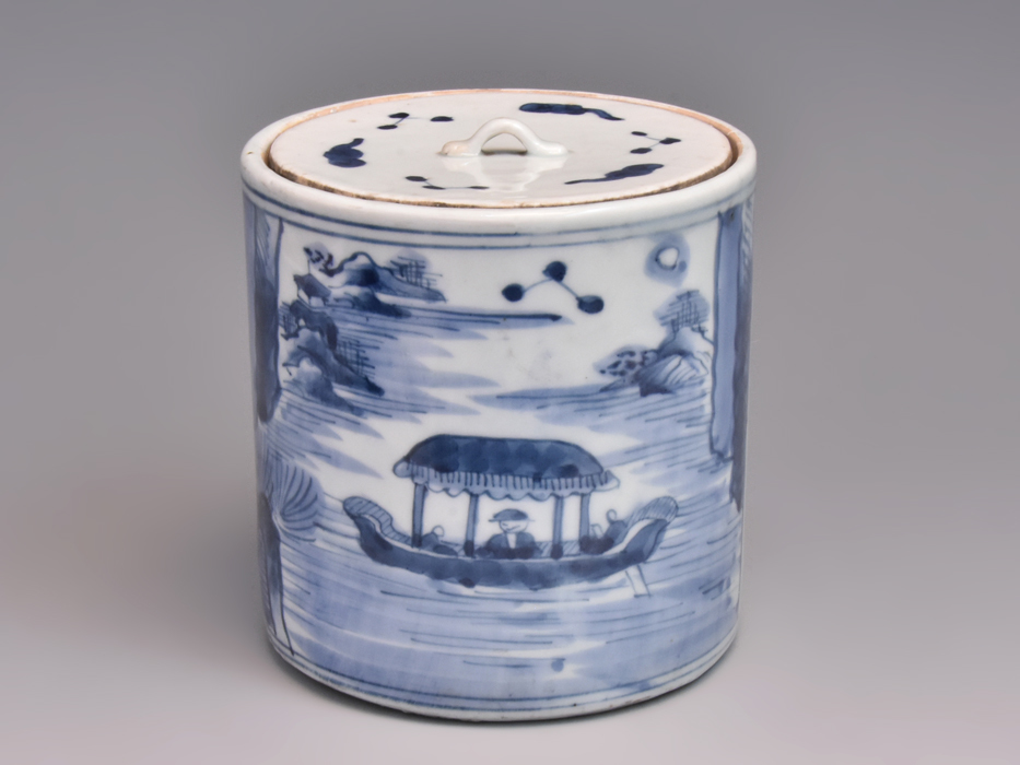 - 中国美術 古染付赤壁水指 高16㎝ 共蓋 茶道具 古陶磁器 陶磁器 明時代 中国古玩 唐物 z1186k