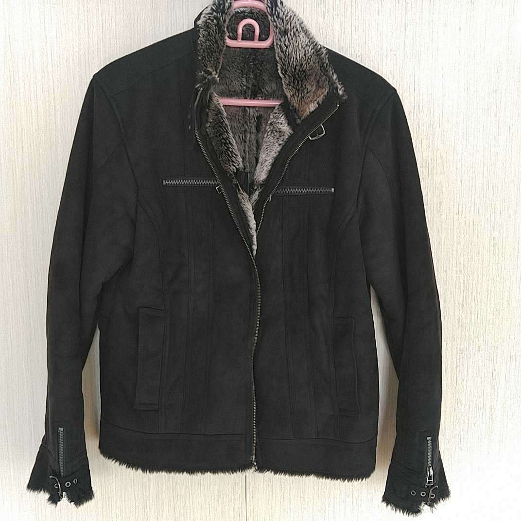 - 古着【MALE&Co.】裏起毛、スエード調コート・ブラック・Lサイズ