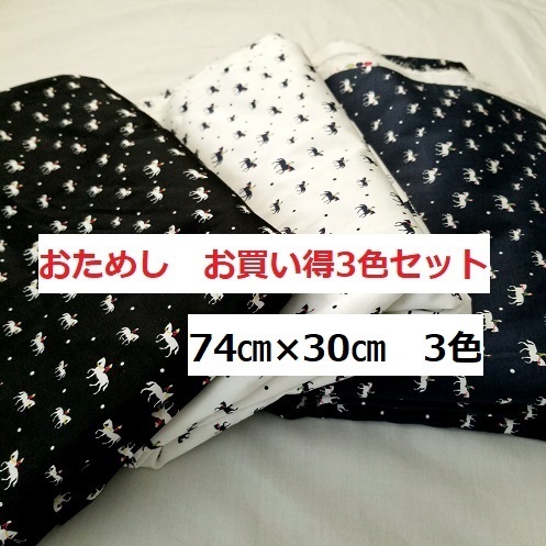 - 馬好きのための 乗馬柄 74㎝×30㎝ 馬柄 3色おためしセット 布 ハギレ 乗馬 馬術