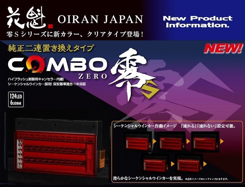 > 【送料無料/保安基準適合】花魁 COMBO 零S/スモール LEDテール/シーケンシャル レッドレンズ★トラック/24V用/左右1台分 (OCZN-RC-S1)