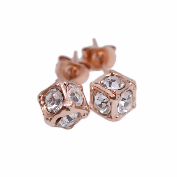 - ★人気★変色無★手入れ不要★肌に優しい★金属アレルギー&温泉&海水浴OK★ステンレスピアス★ピンクゴールドキューブ型&スワロフスキー★