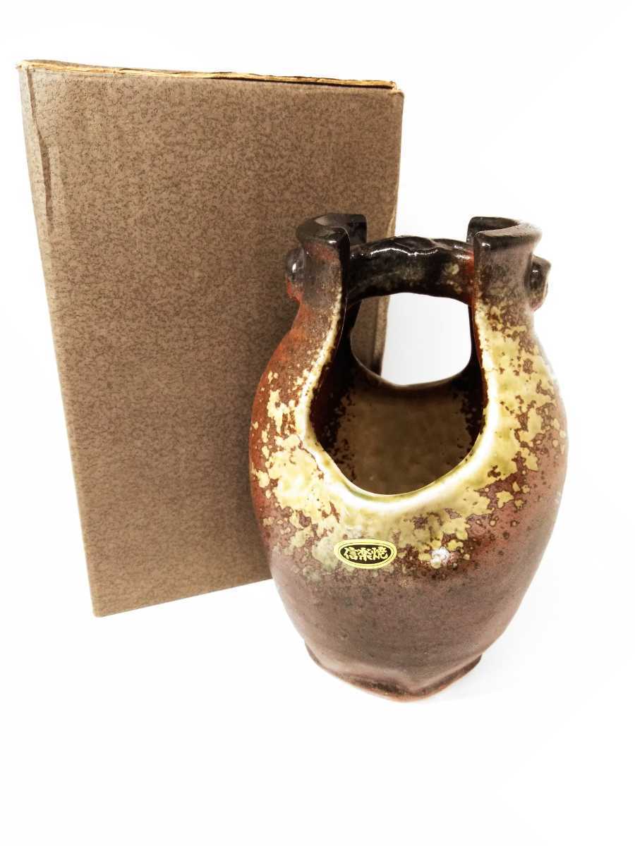 - 信楽焼 手付き 花瓶 工芸品 花器 花道 花道具 会席 生花 花生け インテリア 花壷 瓶 美品 (検索) 茶道 茶道具 陶器 壺