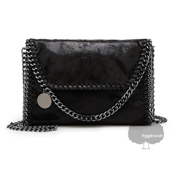 > YGG★新品 プレート付き チェーン ショルダーバッグ 黒 ブラック フラップ式 レディース バック カバン バッグ内部レオパード柄 豹柄