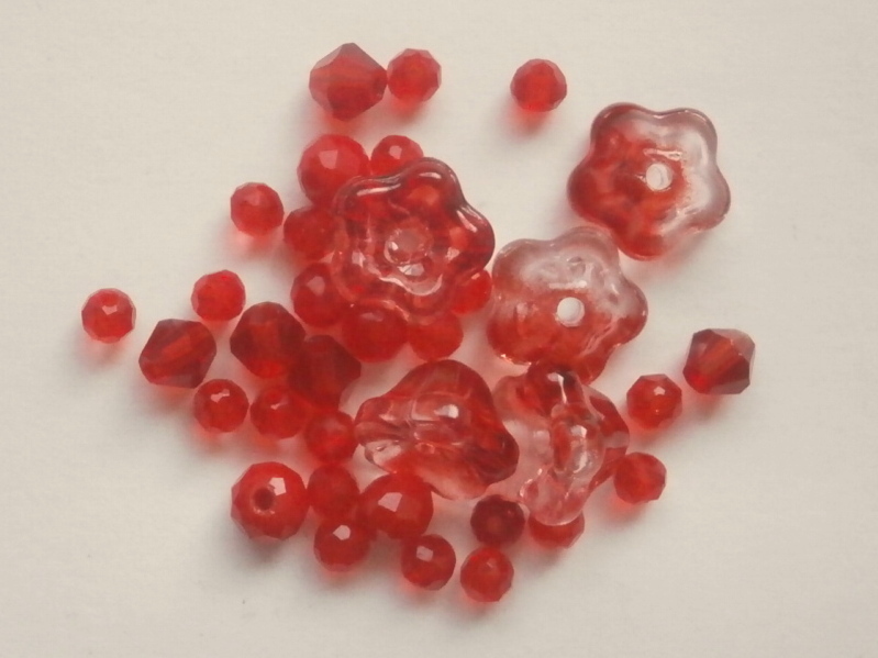 - ガラスビーズ★タイニーフラワー★レッド系★A