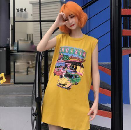 - 【イエロー/フリーサイズ】 レディース ロング Tシャツ ロゴ プリント