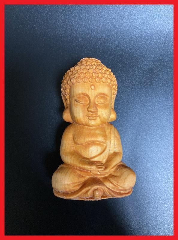 - 【匿名配送】仏像 ヤーバイ 崖柏 天然木 檜 小如来 縁起物 置物 風水 座禅 6-1
