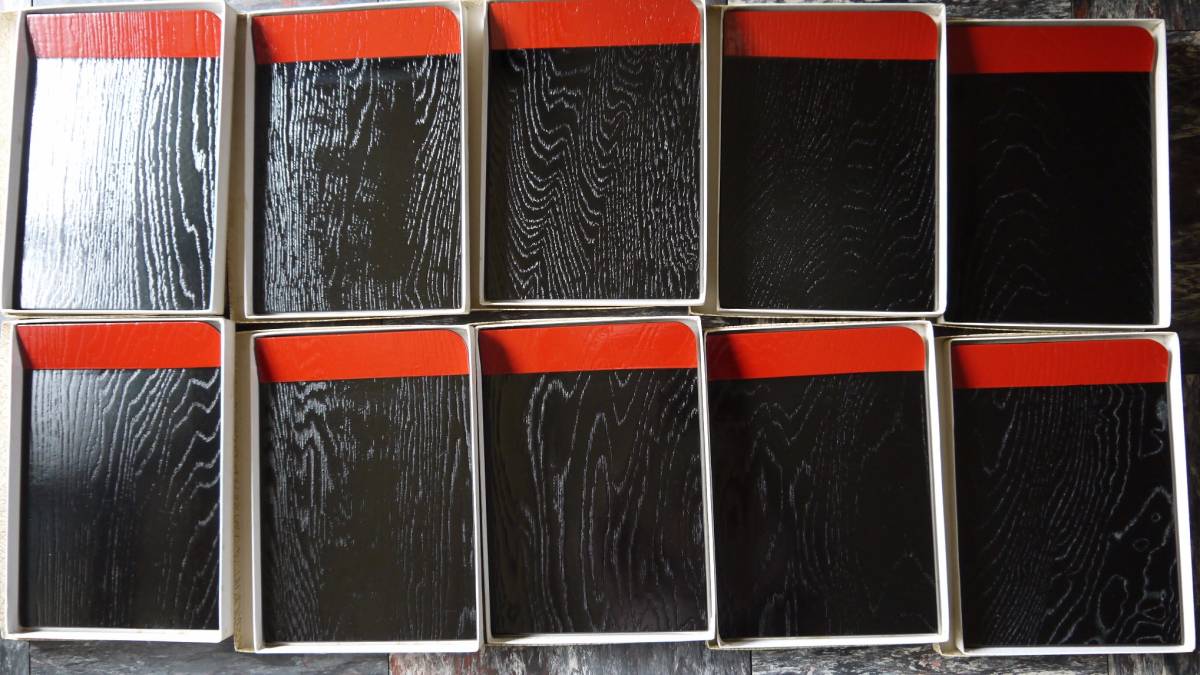 お譲り致しますのは 中古の漆器の折敷盆 10枚です。