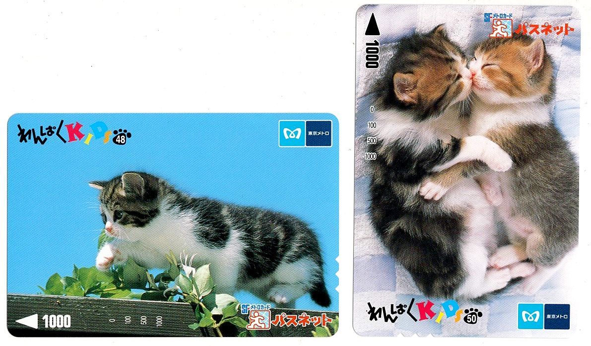 > 【パスネット】わんぱくKIDS「猫」 vol.48、vol.50 1000円分×2枚 パスネットカード【未使用】