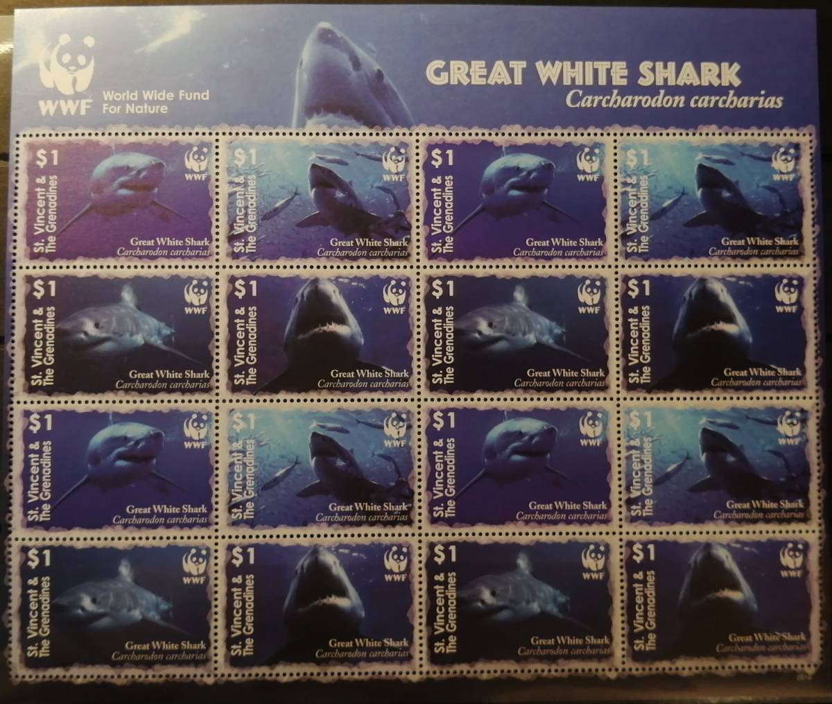 - セントヴィンセント・グレナディン サメ(WWF)(4種(16枚)シート) MNH