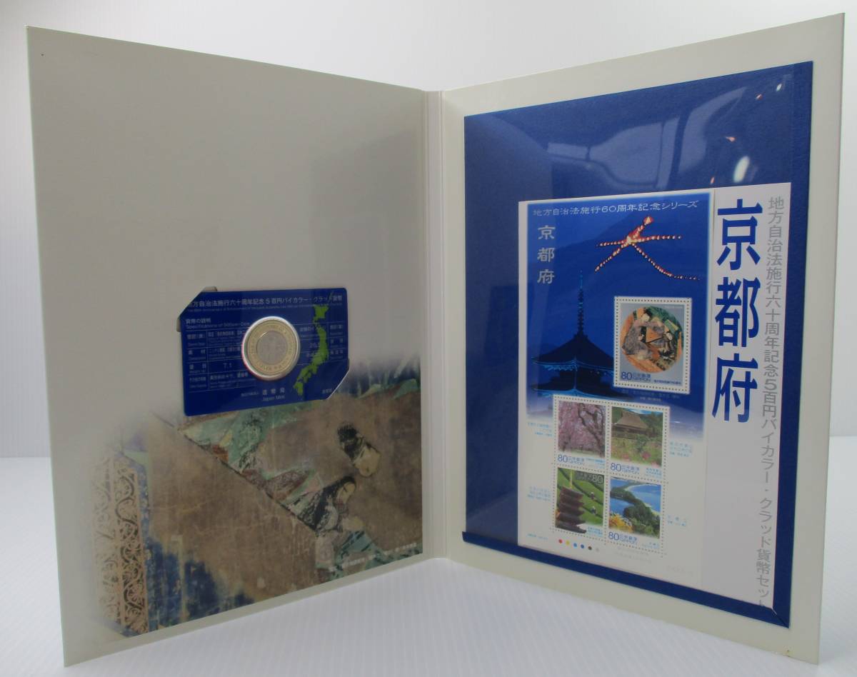 - M-89 地方自治法施行六十周年記念 5百円バイカラー・クラッド貨幣セット(切手 額面400円付き)京都府