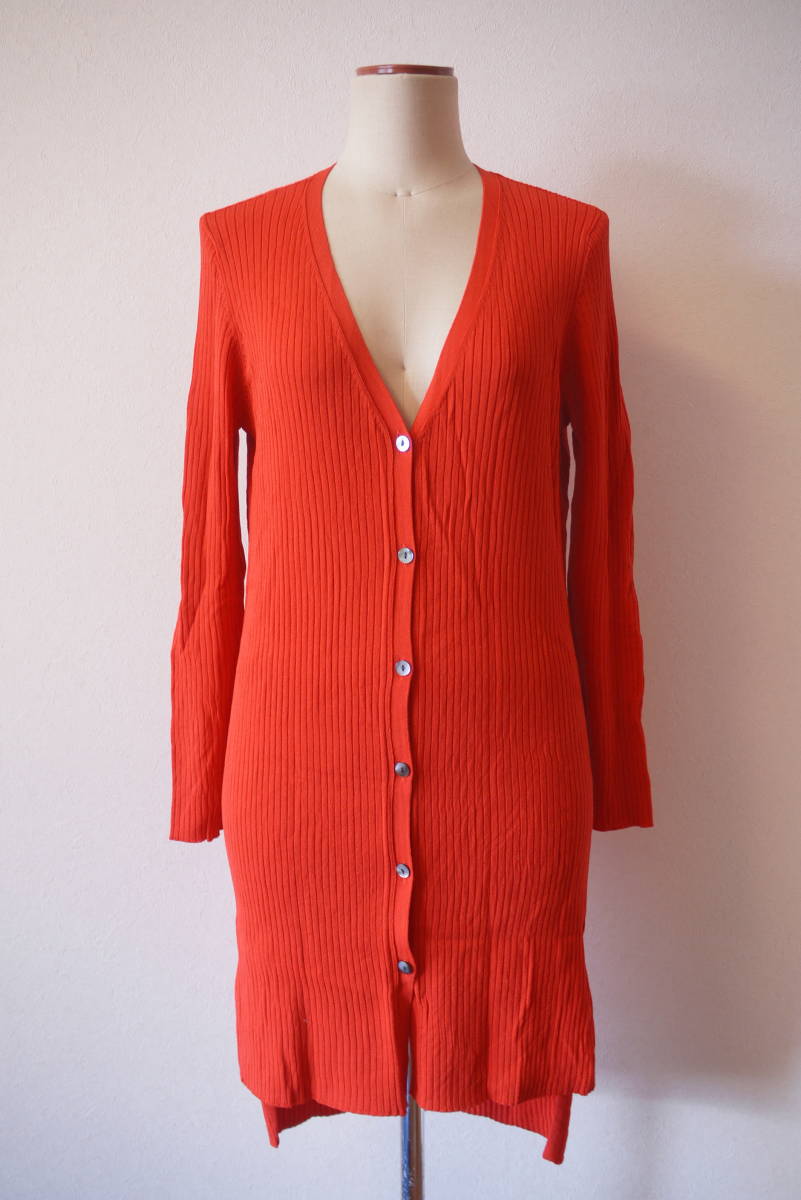 - Liebe リーベ リブロングカーディガン レッド 40 美品