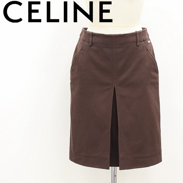 - ◆CELINE セリーヌ ストレッチ コットン フロントワンタック スカート ブラウン 38
