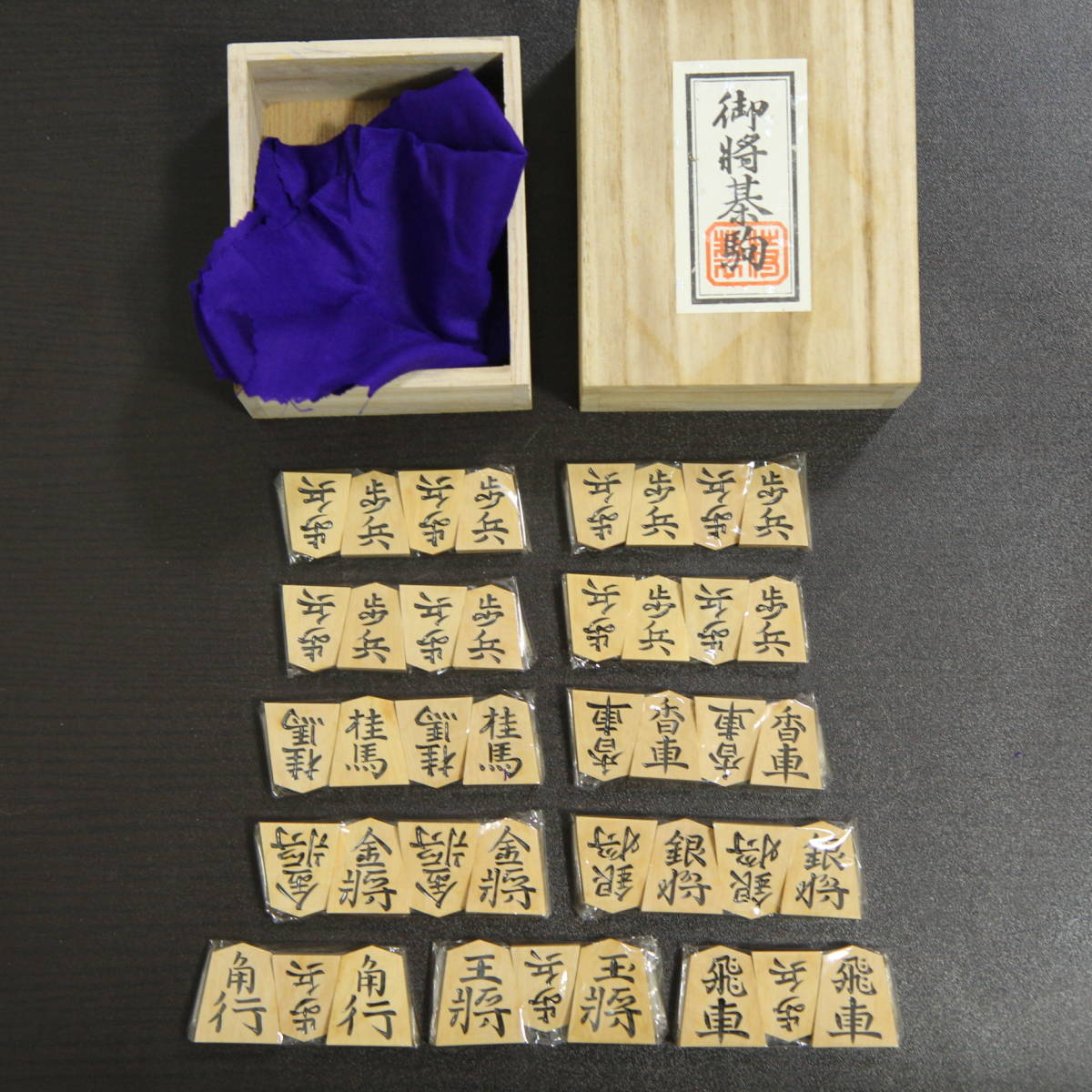 - 未使用【錦旗書】黄楊 玉山作 特上彫駒 将棋駒 駒箱 木製 銘入り余り歩あり 41枚 つげ ツゲ 美品 天童特産 昇級祝い 昇段祝い 本格 230327