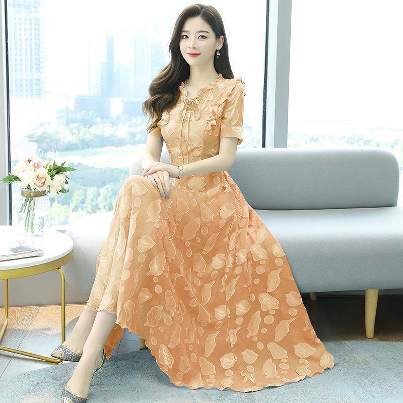 - 【オレンジ花柄★Lサイズ】レディース ロングワンピース