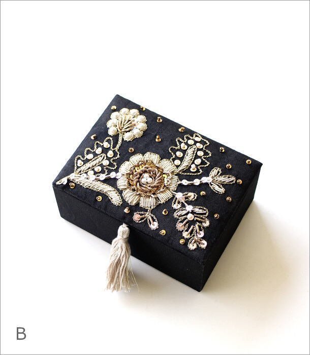 > ジュエリーボックス おしゃれ アクセサリー収納 鏡付き 可愛い ザリ&ビーズ刺繍BOX 【Bカラー】 送料無料(一部地域除く) kan2326b