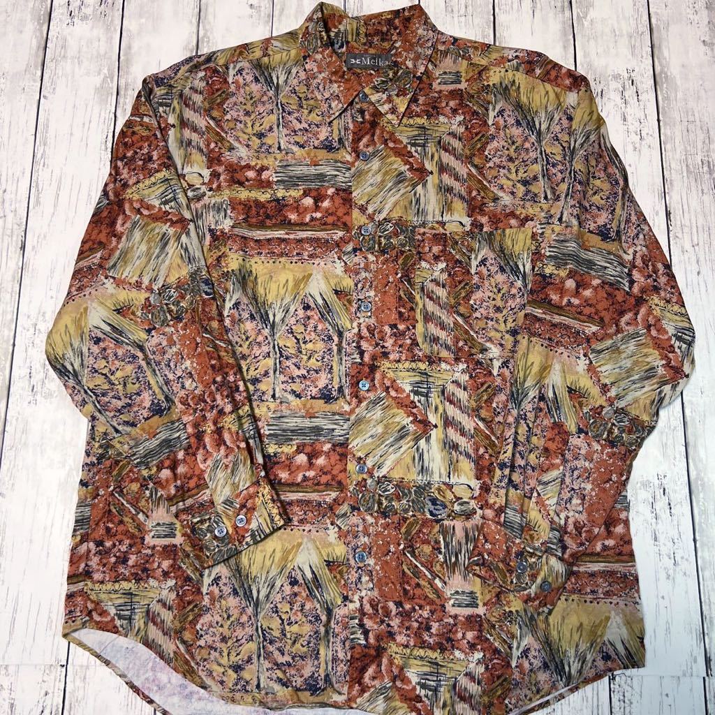 - Melka SWEDEN 総柄 柄シャツ rayon レトロ アート ビンテージ 長袖シャツ レーヨン100%