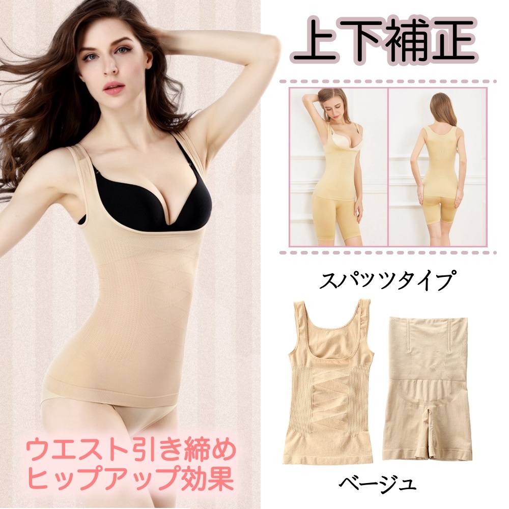 - 送料無料★即納 上下セット 補正下着 ウエストシェイプ ヒップアップ タンクトップ バストアップ ★スパッツタイプベージュ/XS-S