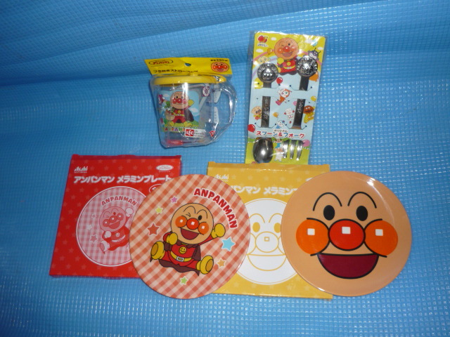 - C★未使用・非売品★レック製 アンパンマン フタ付きストローコップ 250mlとアンパンマンスプーン&フォーク他4点