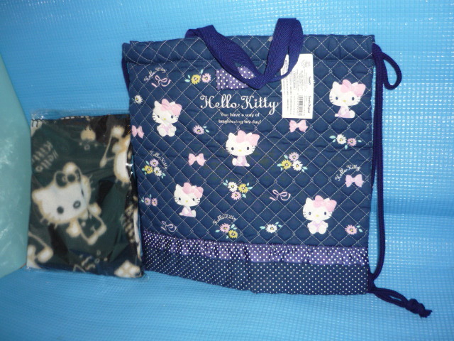 > A★未使用・非売品★2015年サンリオ ハローキティ ナップサック テヒモキンチャクとフリースブランケット