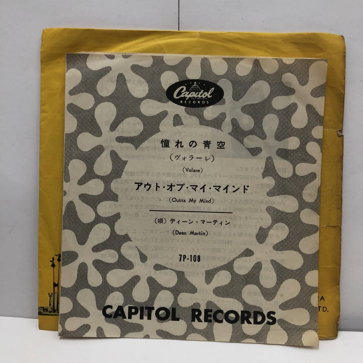 - [レコード] EP「ディーン・マーティン:憧れの青空(Valare:ヴォラーレ)」 45回転 キャピタルレコード レトロ 中古