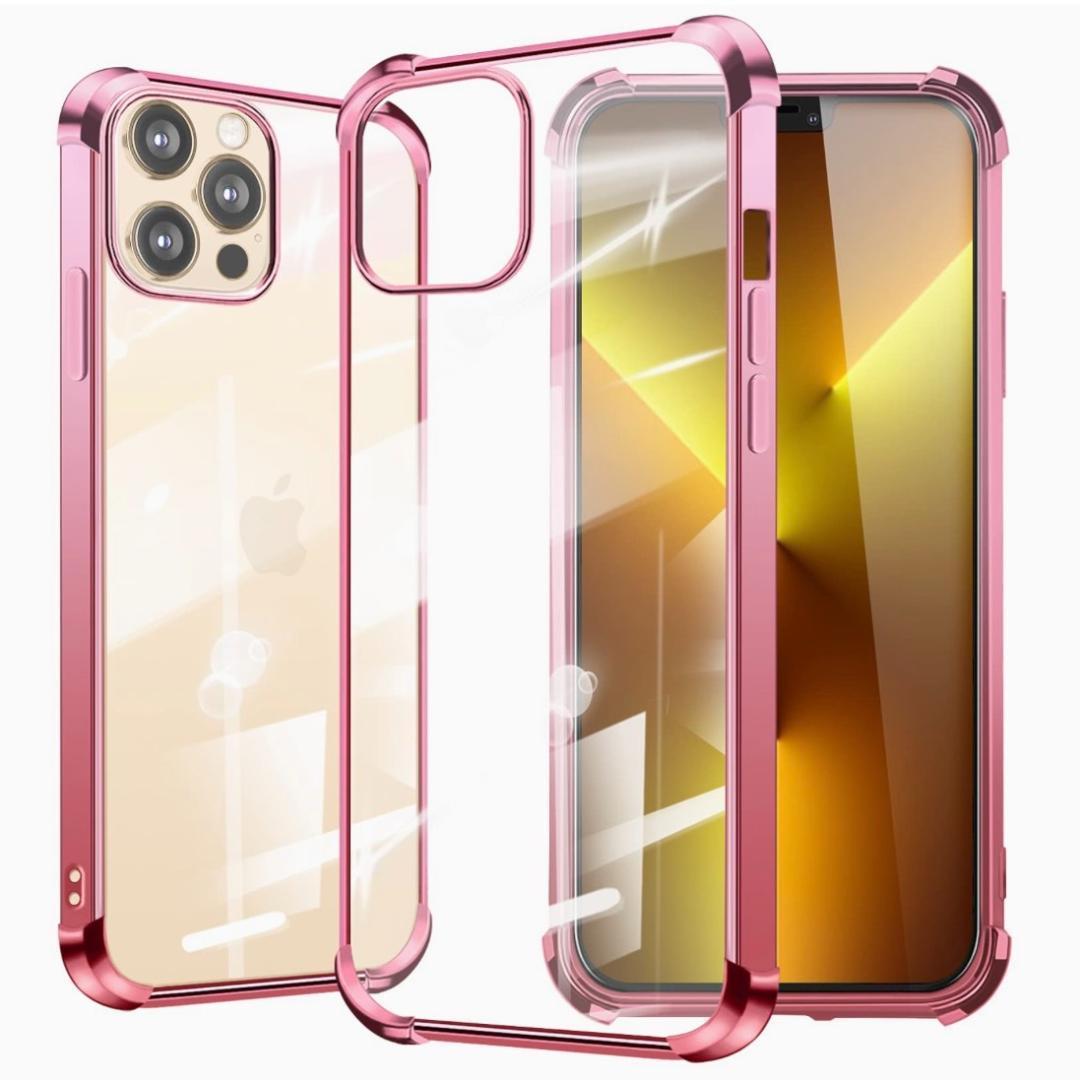 - iPhone 12用 ケース 耐衝撃 アイフォン スマホケース クリア ソフト 透明 カバー ピンク 背面クリア ストラップホール付き ローズゴールド