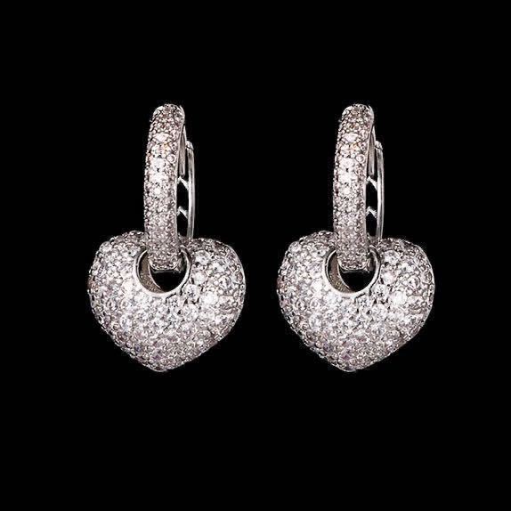 - 新品 2way AAA CZ ダイヤモンド ハート リングピアス ホワイトゴールド ダイヤモンドピアス 高品質 華やか プレゼント 送料無料