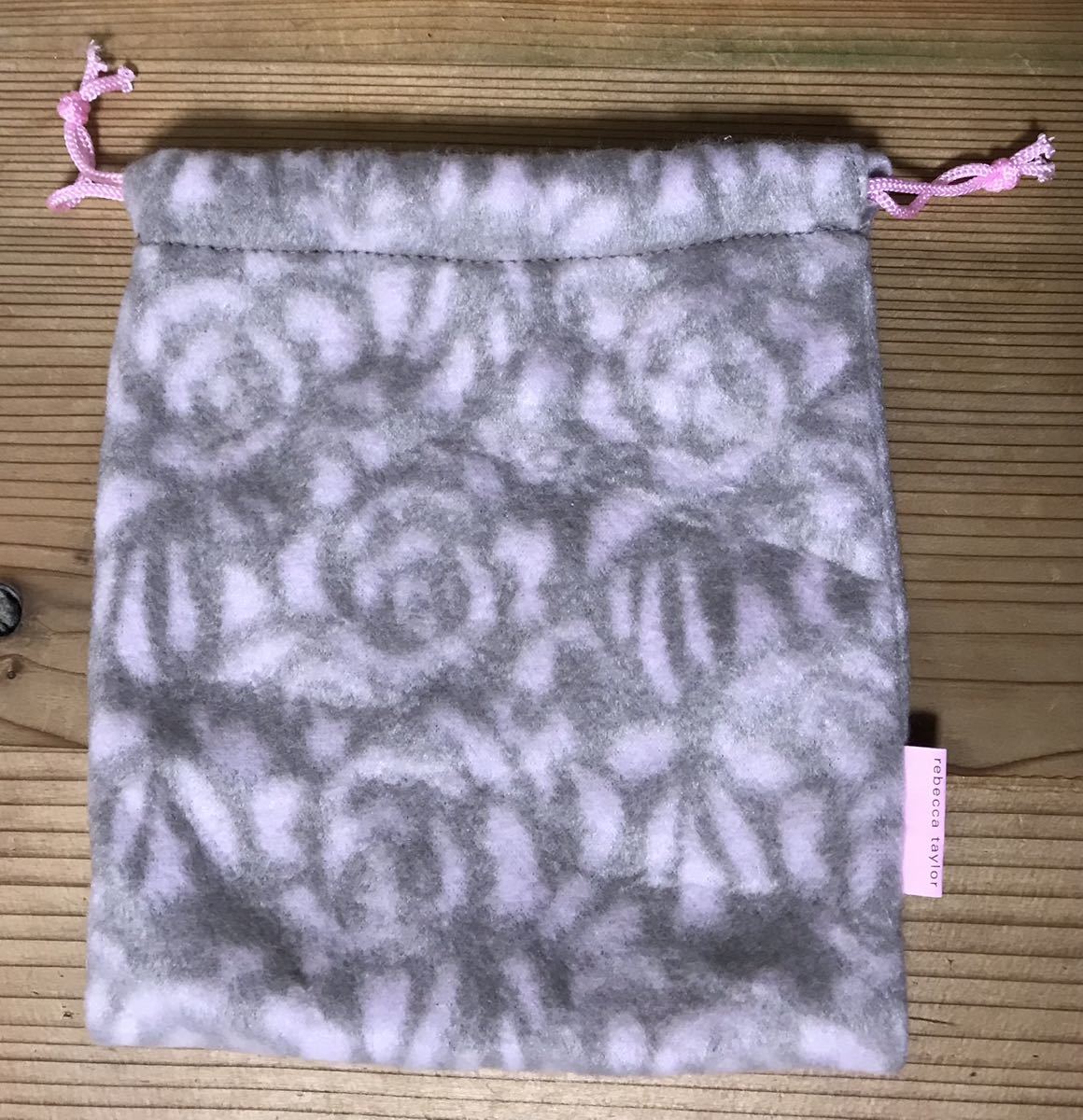- 巾着★ピンク&グレー★約横17×縦19cm