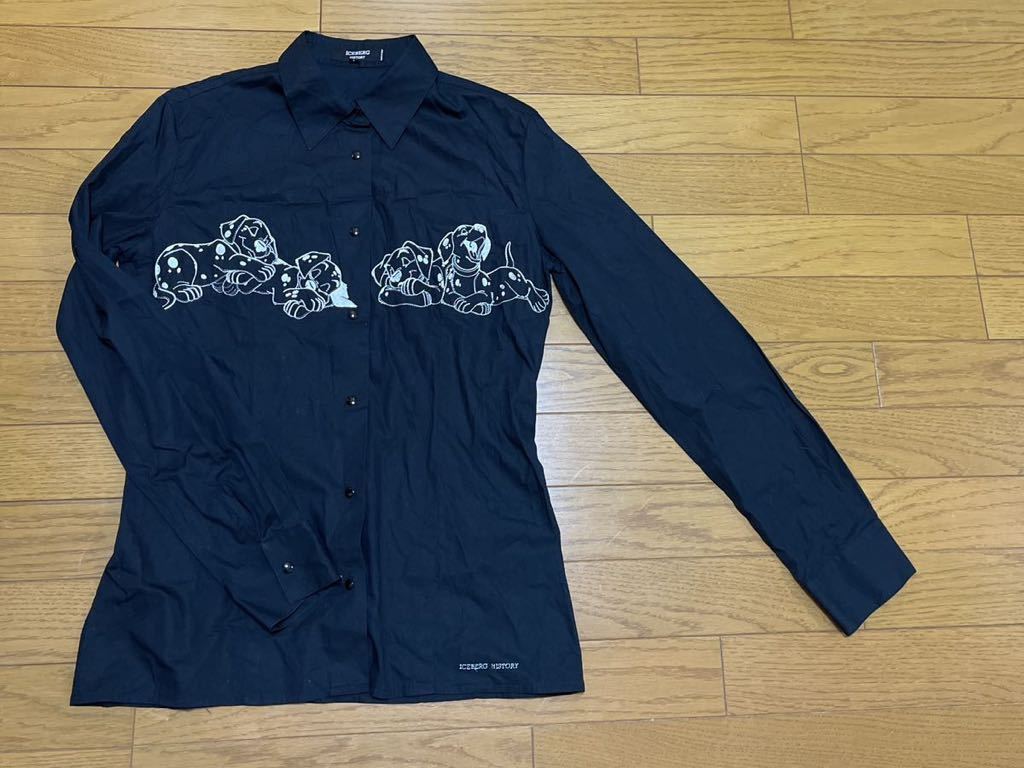 - 送料無料■ICEBERG アイスバーグ ブラック 長袖 ブラウス シャツ 101匹わんちゃん 刺繍 サイズ42 イタリア製 101 ダルメシアン