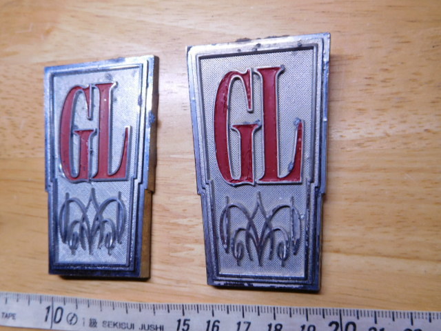 > 希少レア彡中古・日産バイオレット1600?サニー1200?不明?GL(金属製)2個まとめて・エンブレムバッチ旧車レトロカー当時物・街道レーサー