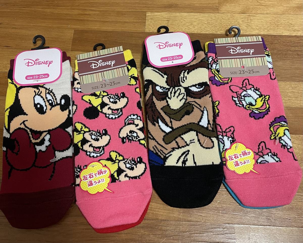 - 送料込☆ディズニー ミッキー&ミニー ドナルド&デイジー 美女と野獣 靴下 23~25cm 4足セット