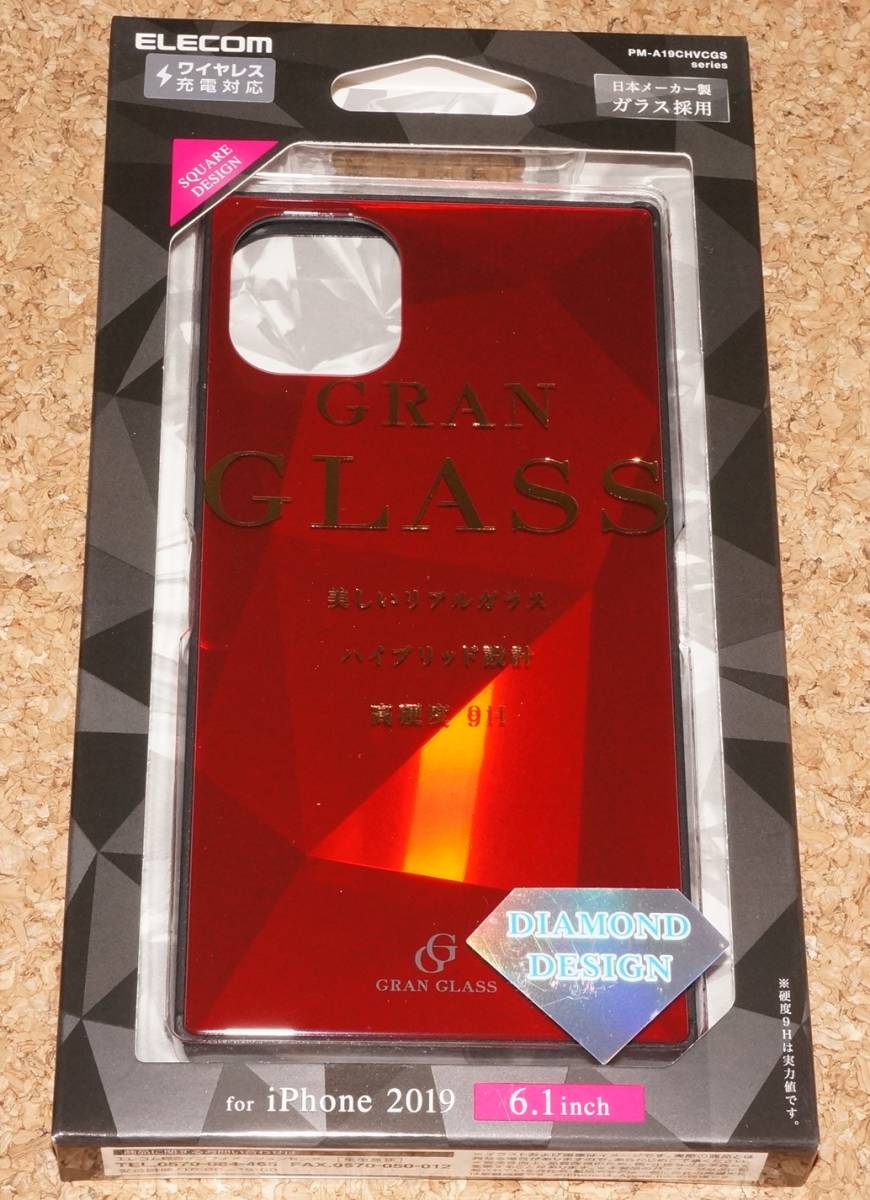 > ★新品★ELECOM iPhone11 ハイブリッドガラス スクエア ダイヤモンド レッド