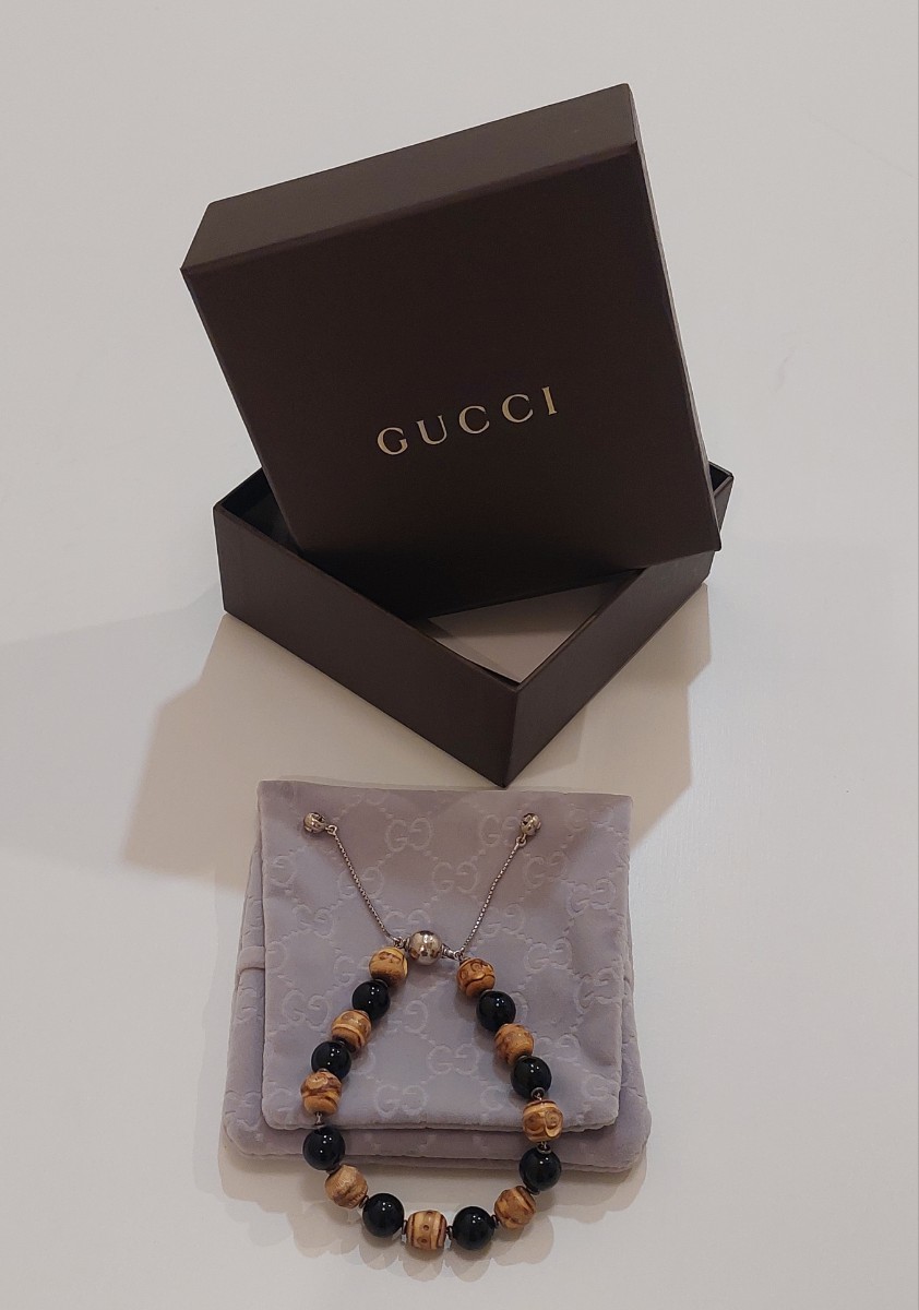 - GUCCI バンブー オニキス シルバー ブレスレット GG ストーン バングル 美品