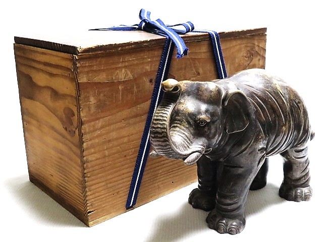 - 備前象置物 小西陶古 高さ約18.5cm 備前焼 飾り物 時代 用心箱
