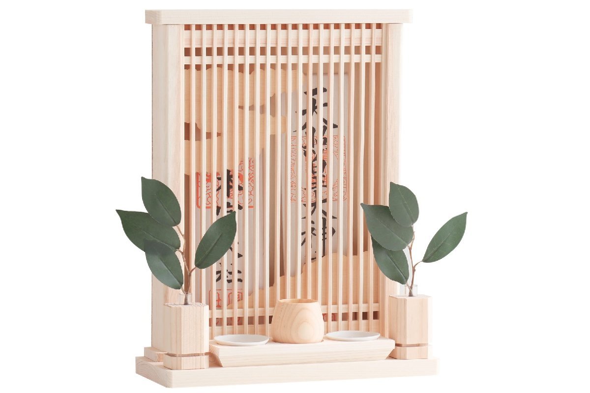 - モダン神棚セット 神具付き ミニ 天照 アマテラス 雲 薄型 箱宮 お札立て コンパクト 壁掛け 御朱印帳 お守り入れ