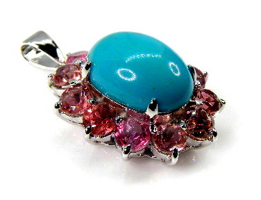 - ■天然トルコ石■Pトルマリンで取巻き■SV.925■ペンダント