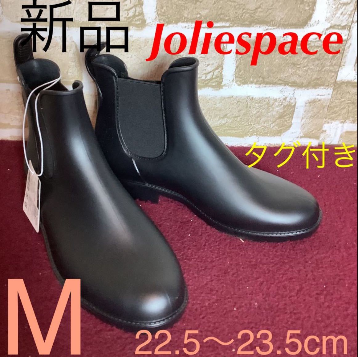 - 【売り切り!送料無料!】A-316 ⑤Joliespace!サイドゴアレインブーツ!黒! M 22.5〜23.5cm位!ショートブーツ!レインブーツ!新品