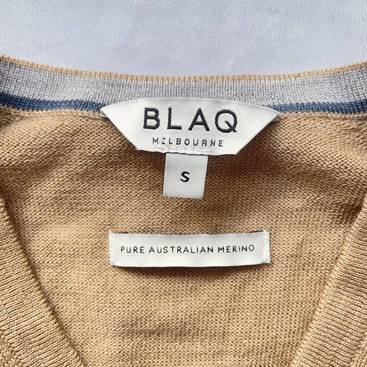 - BLAQ メルボルン ピュアオーストラリア メリノウール100% ベージュ ニットセーター Vネック