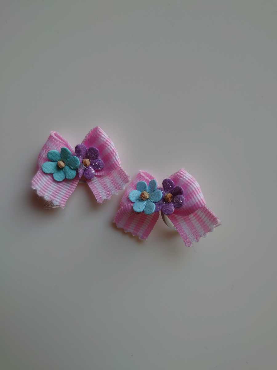 - 犬*犬用アクセサリー*リボン*可愛い*女の子*美品*お花*ピンク*ストライプ*爽やか*わんちゃんオシャレ*