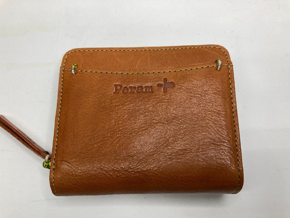 - 送料無料!2つ折り財布 ウオレット ラウンドジップ シュリンクレザー 牛革 明茶1 日本製 Peram レディース★未使用格安!
