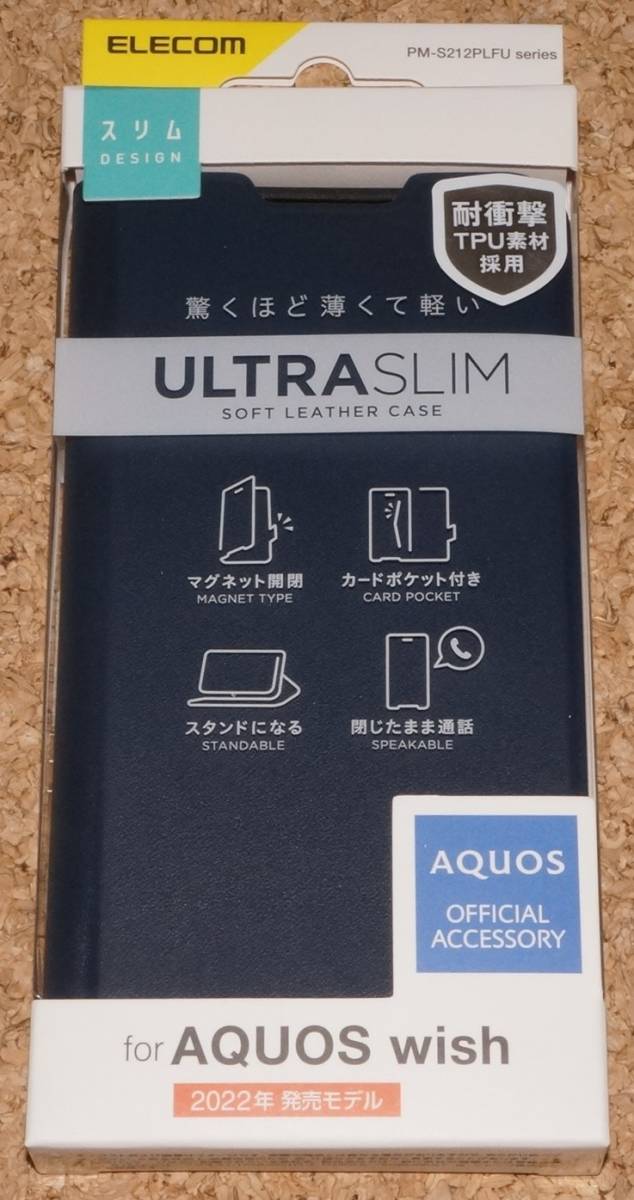 > ★新品★ELECOM AQUOS wish/wish2 レザーケース Ultra Slim ネイビー