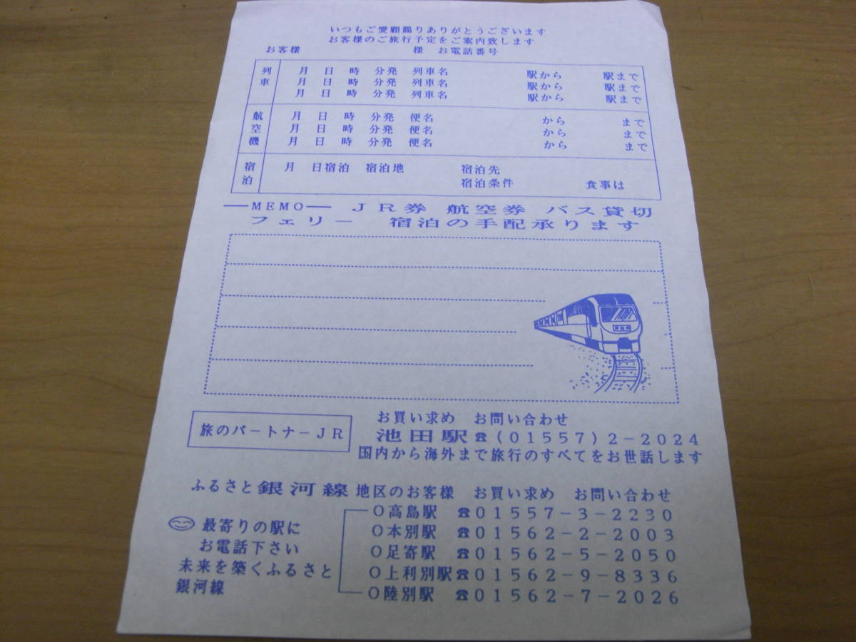 - ちほく高原鉄道 ふるさと銀河線 書類1枚
