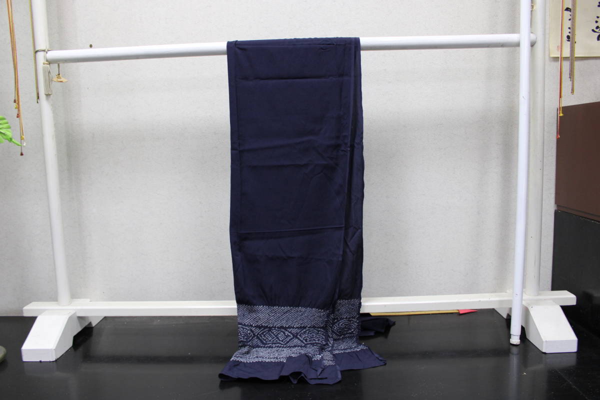 - きもの今昔5115 男の和服 兵児帯とお召の着物と羽織アンサンブルセット 着物に傷穴あり(画像⑩) 着物丈142cm