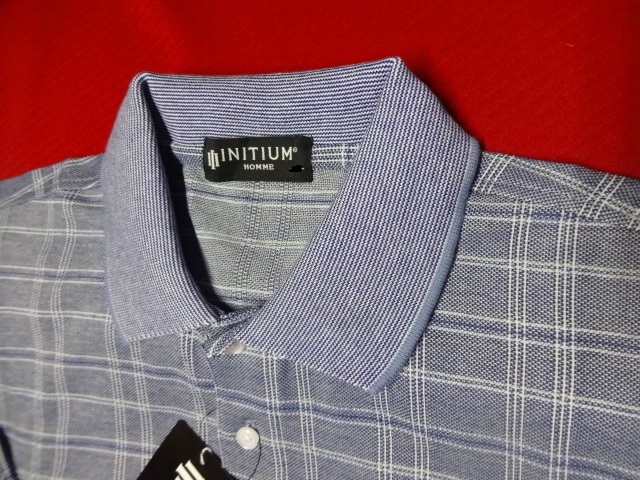 - 新品 INITIUM HOMME ポロ 長袖 LL 紺系 格子柄 綿混/POLOパパ レターパックライト